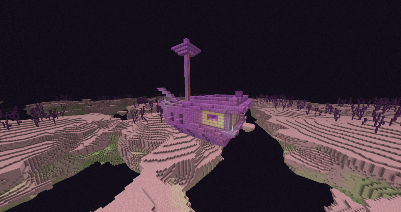 Перша кімната — корабель. Це найважливіша кімната, бо там є елітри. Поруч — дві скрині з лутом. Цю структуру ні з чим не сплутаєш. Підіймайся нагору обережно :)